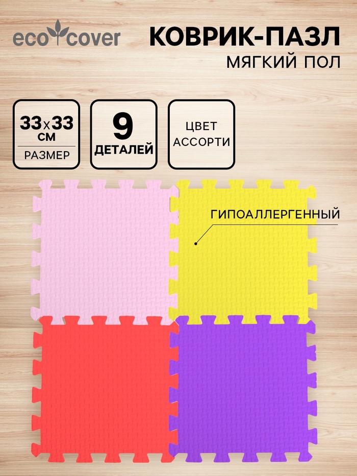 Мягкий коврик - пазл, ассорти, 9 деталей, универсальный, 33×33 см