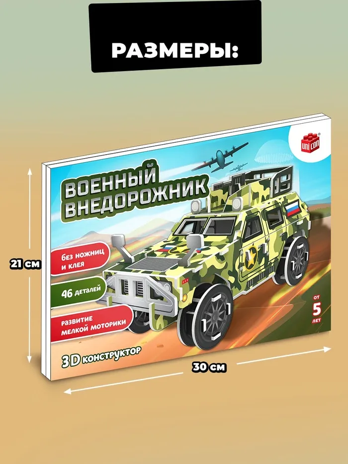 3D Конструктор из пенокартона «Военный внедорожник», 46 деталей