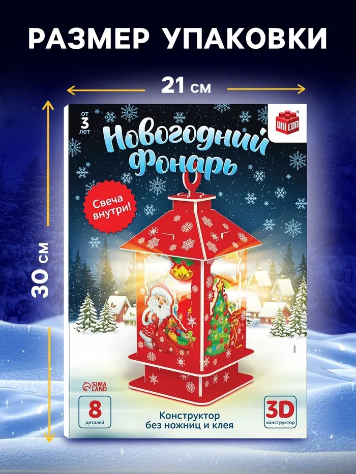 3D Конструктор «Новогодний фонарь», свеча, 8 деталей