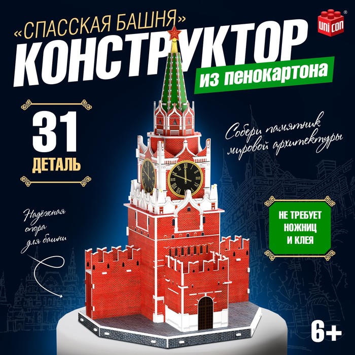 Конструктор 3D «Спасская Башня», 29 деталей, с гирляндой, новогодний