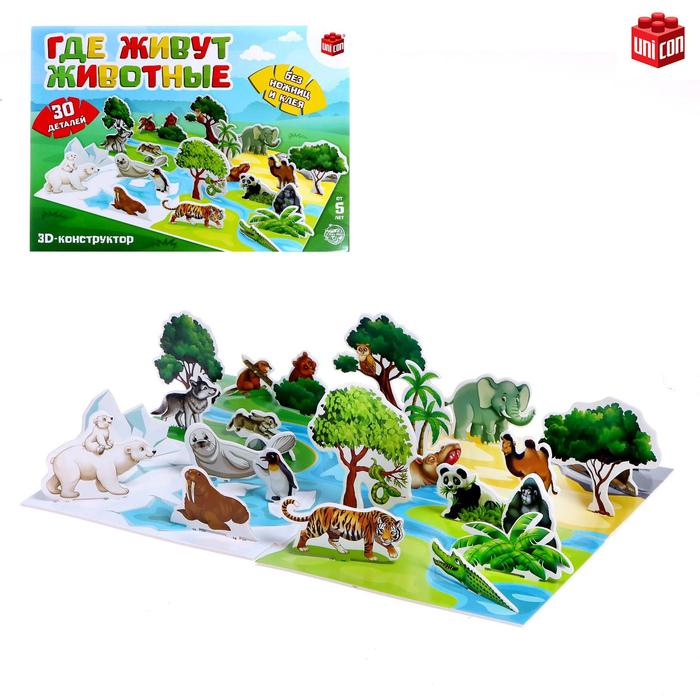 3D конструктор «Где живут животные», 30 деталей