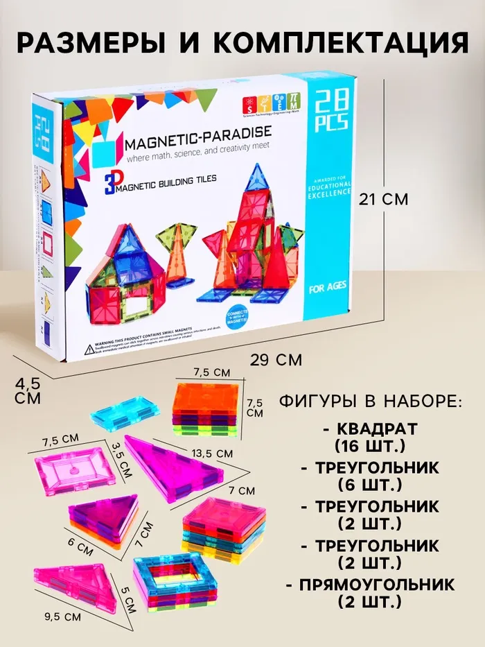 Конструктор магнитный «Геометрические фигуры», 28 деталей