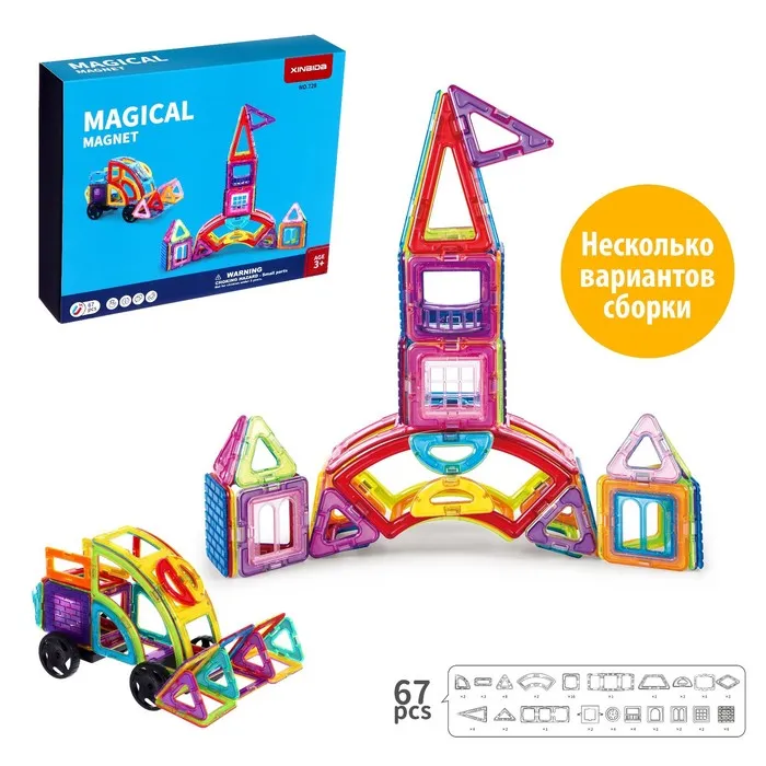 Магнитный конструктор Magical Magnet, 61 деталь, детали матовые