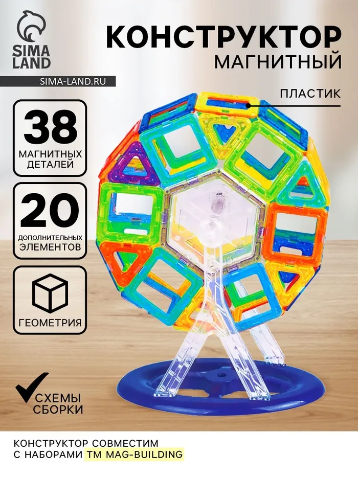 Конструктор магнитный «Геометрические фигуры», 36 деталей