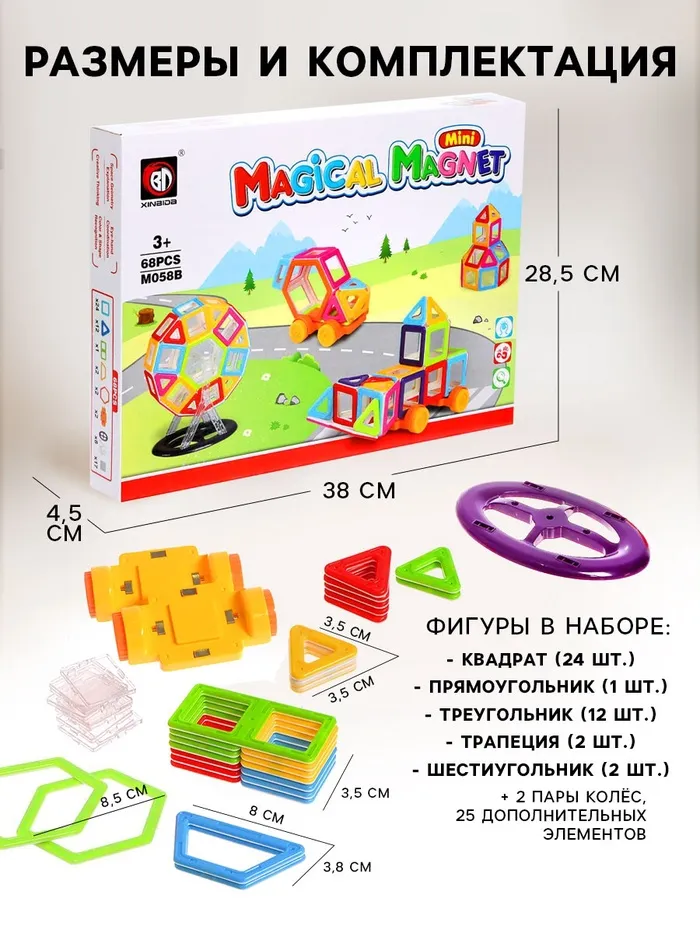 Магнитный конструктор «Транспорт» 3,5×26,5×20,5 см