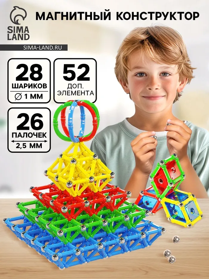 Конструктор магнитный «Мини магический магнит», 58 деталей
