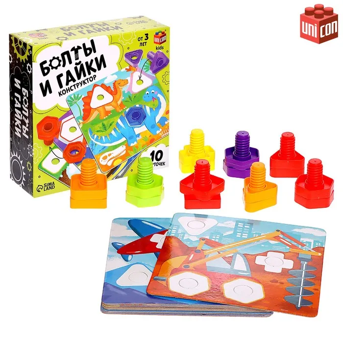 Конструктор «Болты и гайки», 10 карточек, транспорт