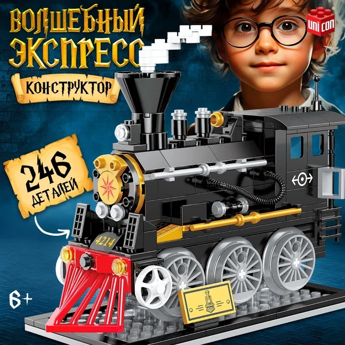 Конструктор «Волшебный экспресс», модель ретро локомотива - паровоза, 246 деталей