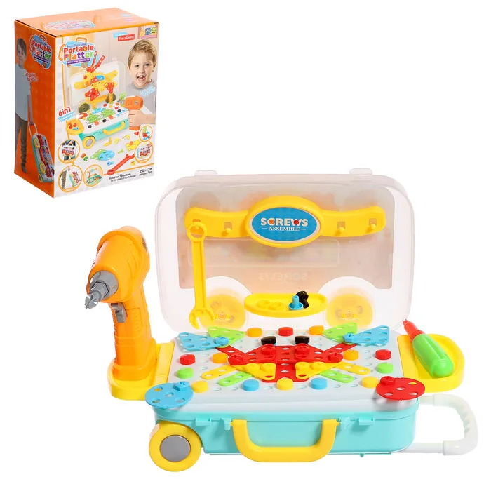 Конструктор винтовой «Юный мастер», 6 в 1, в чемодане, с электрическим шуруповёртом