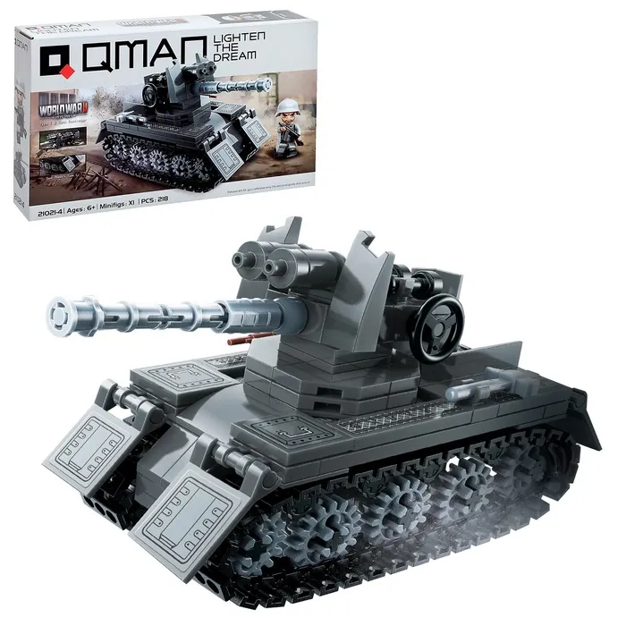 Конструктор блочный Вторая мировая война «Военный танк», 218 деталей