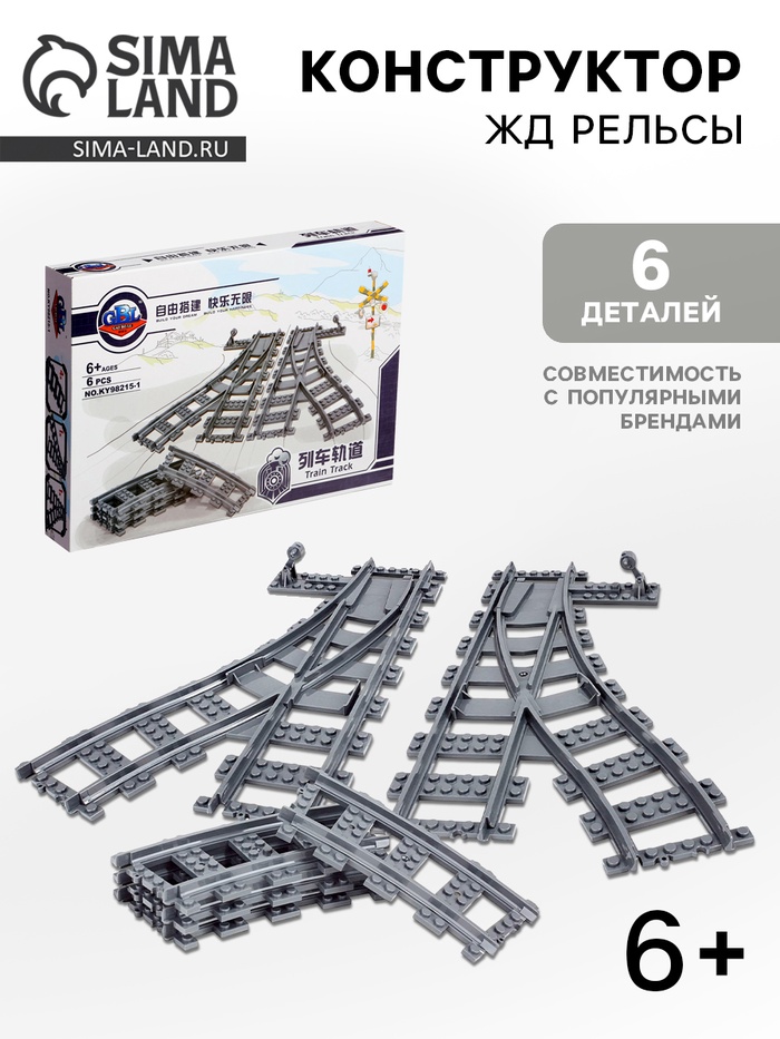 Конструктор «Рельсы со стрелками», набор, 6 элементов