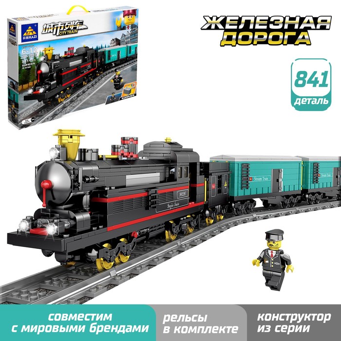 Конструктор ЖД «Паровоз с составом», работает от батареек, 841 деталь