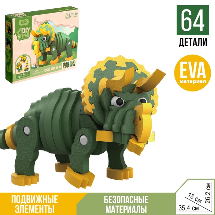 Конструктор «Трицератопс», мягкий, материал EVA, 64 детали