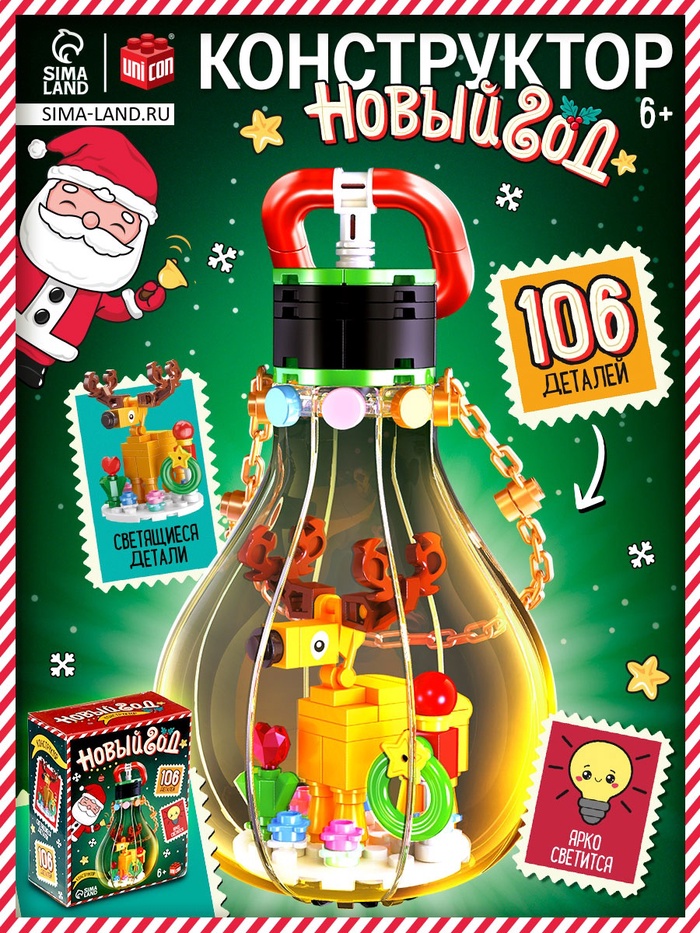 Конструктор «Новый год», с оленем, светящиеся детали