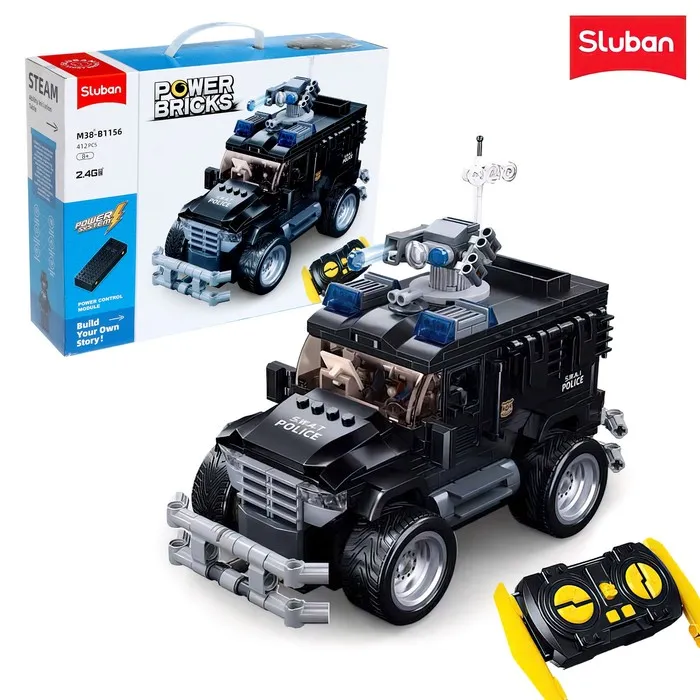 Конструктор полицейский внедорожник Sluban Механо, на радиоуправлении, 412 деталей, 6+