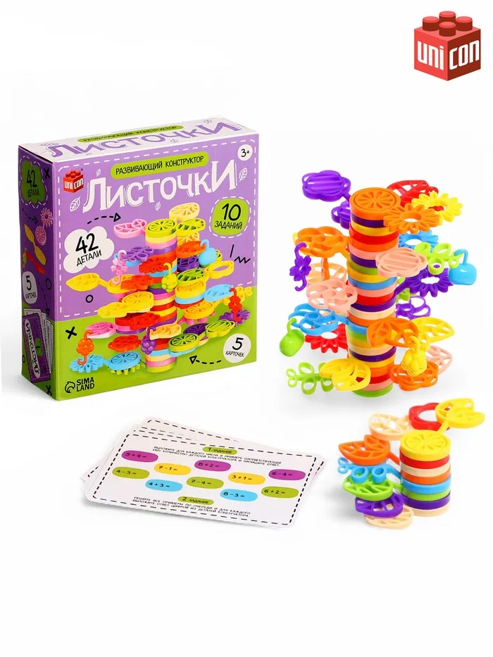 Конструктор развивающий «Листочки», с заданиями, 42 детали