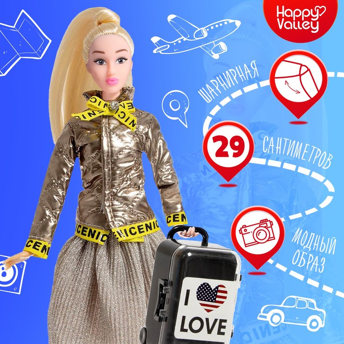 Кукла-модель шарнирная «Элис в Нью-Йорке» с аксессуарами, серия Вокруг света