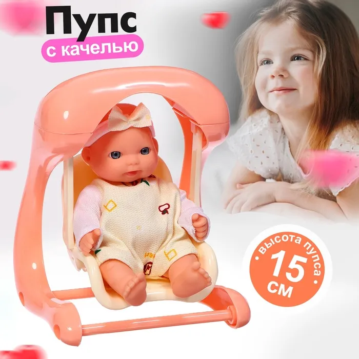 Пупс «Милый малыш» с качелью, 15 см, МИКС