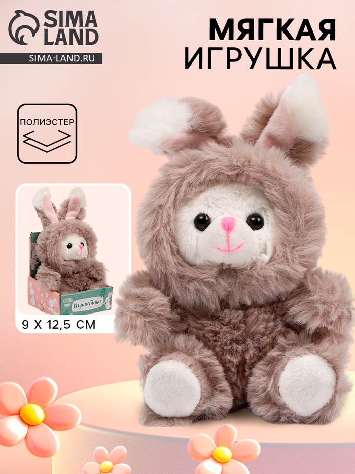 Мягкая игрушка «Зайка Ми» в платье с пурпурным цветком, 18 см