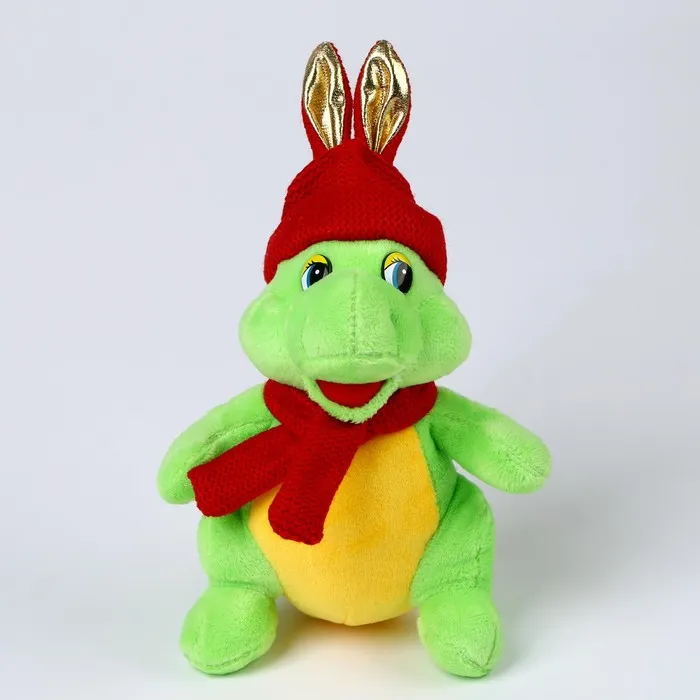 Мягкая игрушка «Дракон», в красной шапке с ушами, 15 см, цвет зелёный