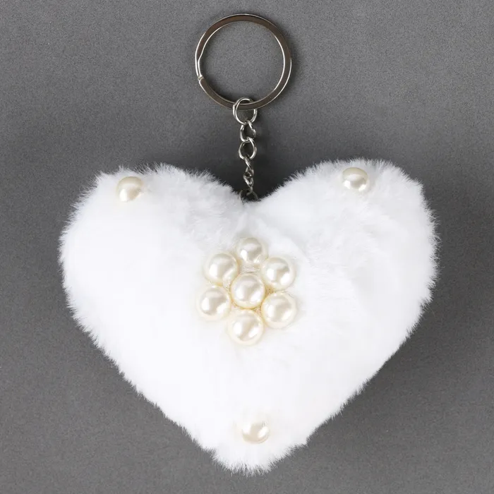 Брелок-мягкая игрушка «Сердечко» с бусинами, 10 см, цвет белый