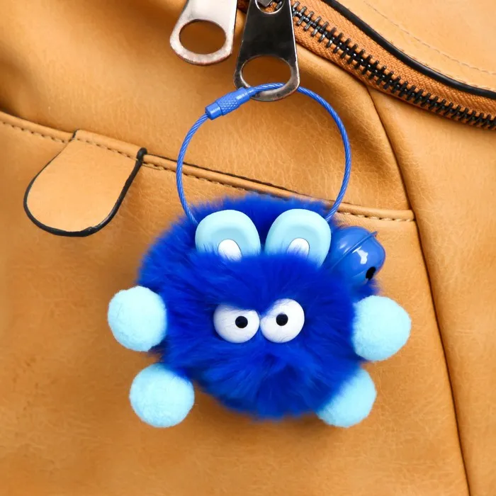 Пушистик на троссе с бубенчиком "Чудик с голубыми ушками" ярко-синий 8 см