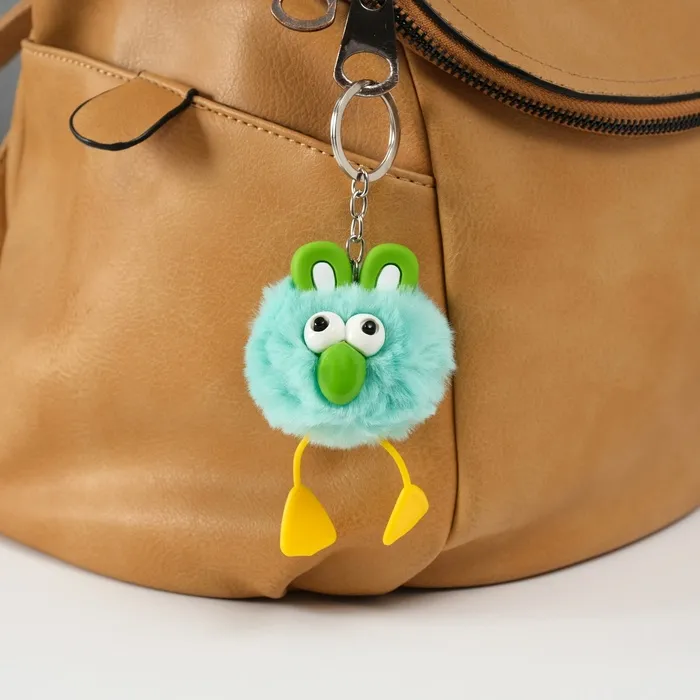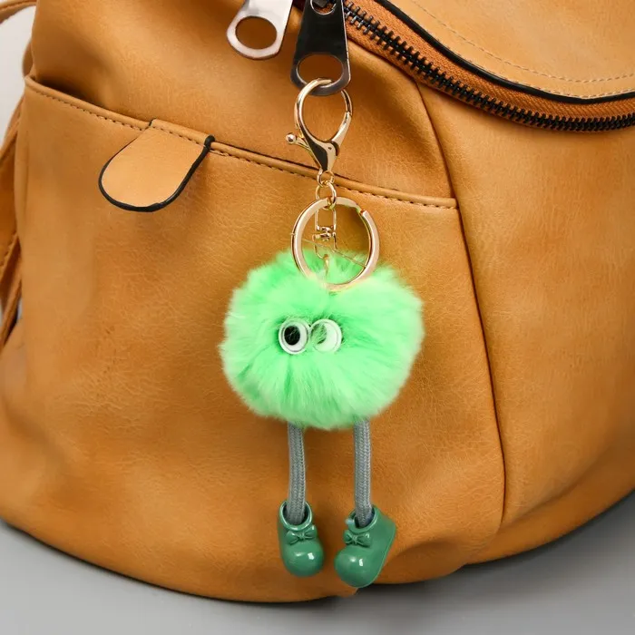 Пушистик на кольце с карабином "Чудик с длинными ножками в ботинках" салатовый