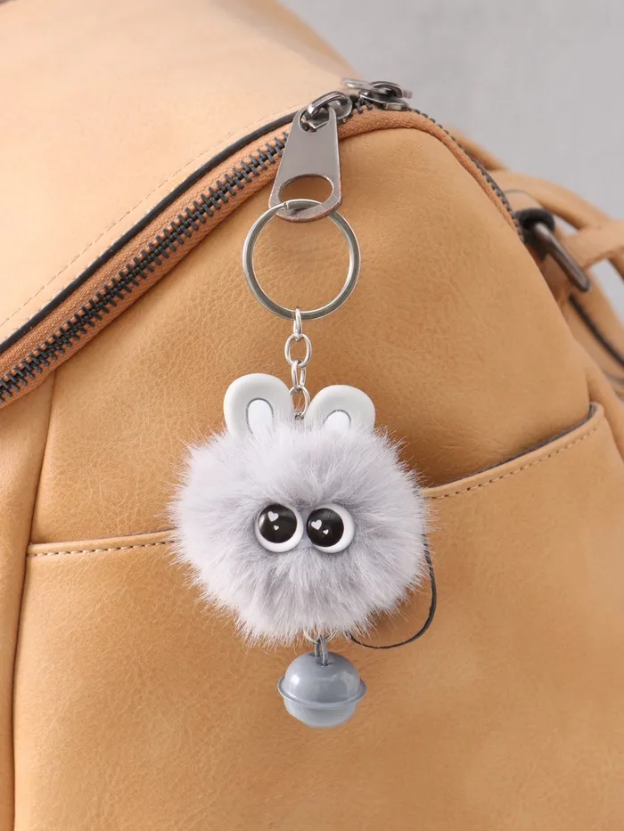 Пушистик на кольце "Звёздные глазки с бубенчиком" серый 8,5х6х6 см