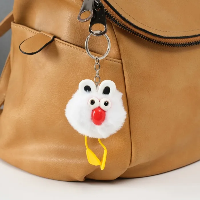 Пушистик на кольце "Большеглазая ворона" белый 9,5х6х6 см