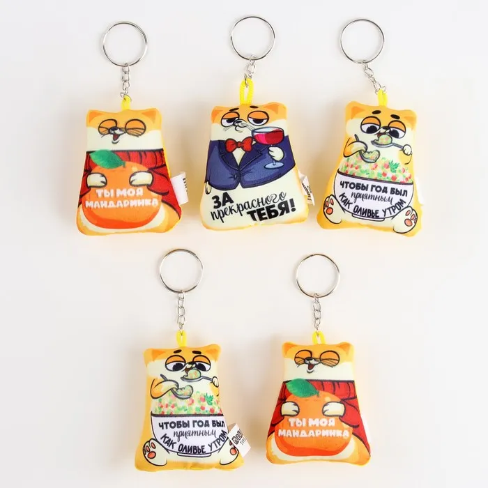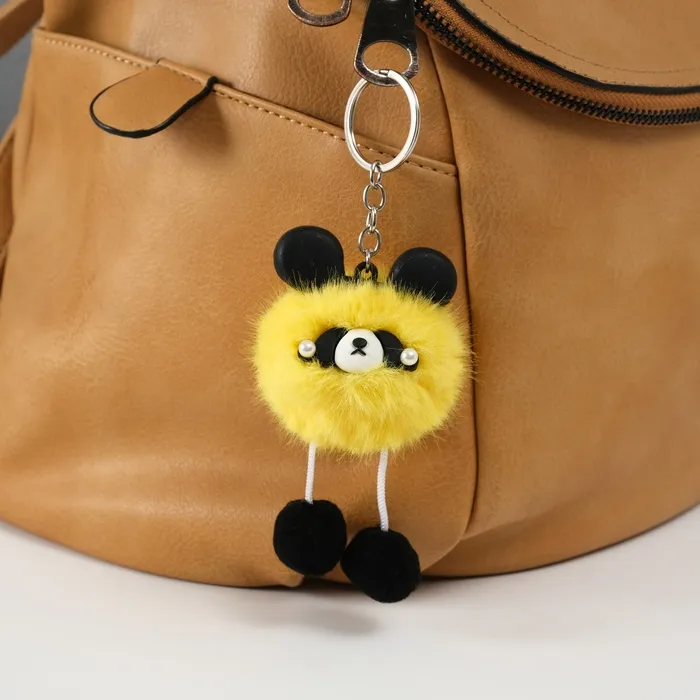 Пушистик на кольце "Панда модник" жёлтый 9х6х6 см