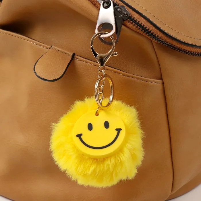 Пушистик на кольце с карабином "Смайл" жёлтый 8х8 см