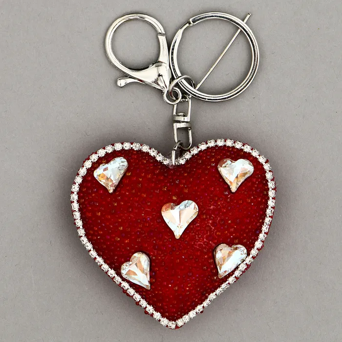 Брелок «Объемное сердце» со стразами, 7 см, цвет красный