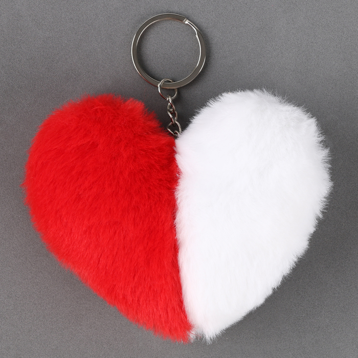 Брелок для ключей на кольце «Пушистик. Сердечко половинки», на сумку, рюкзак, 10 см, бело-красный