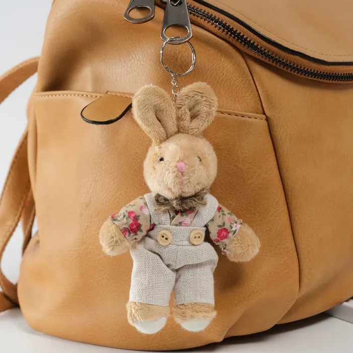 Брелок текстиль "Зайка в цветочном комбезе" 8,5х4х14 см