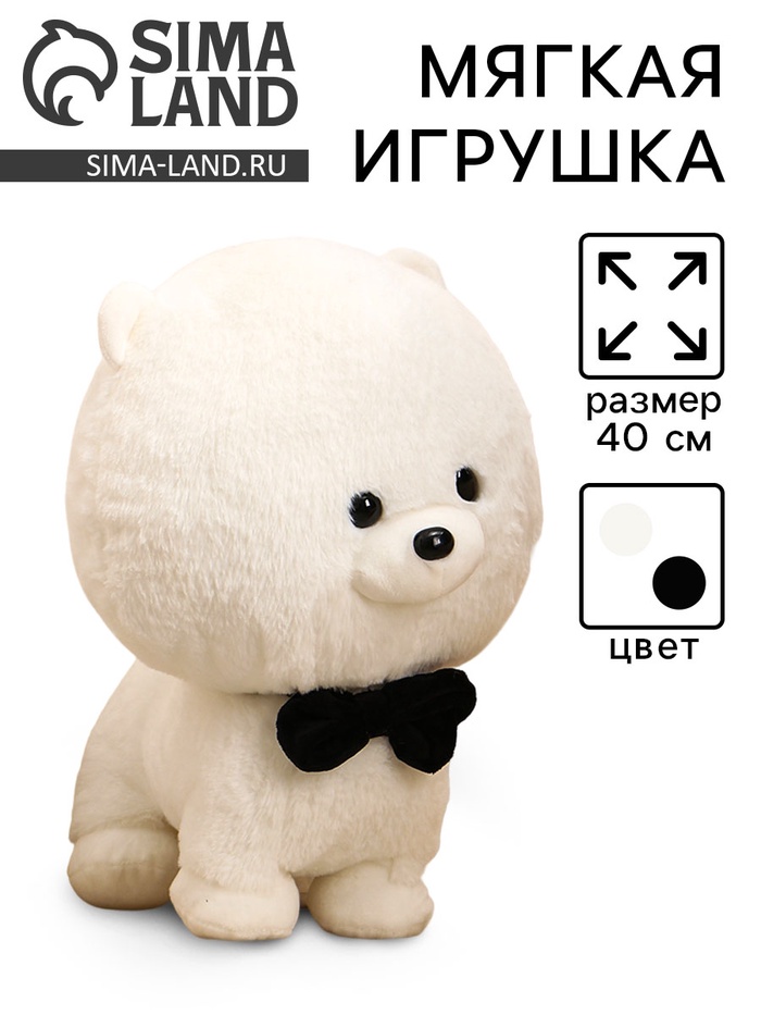 Мягкая игрушка «Собака с бабочкой», 40 см, цвет белый