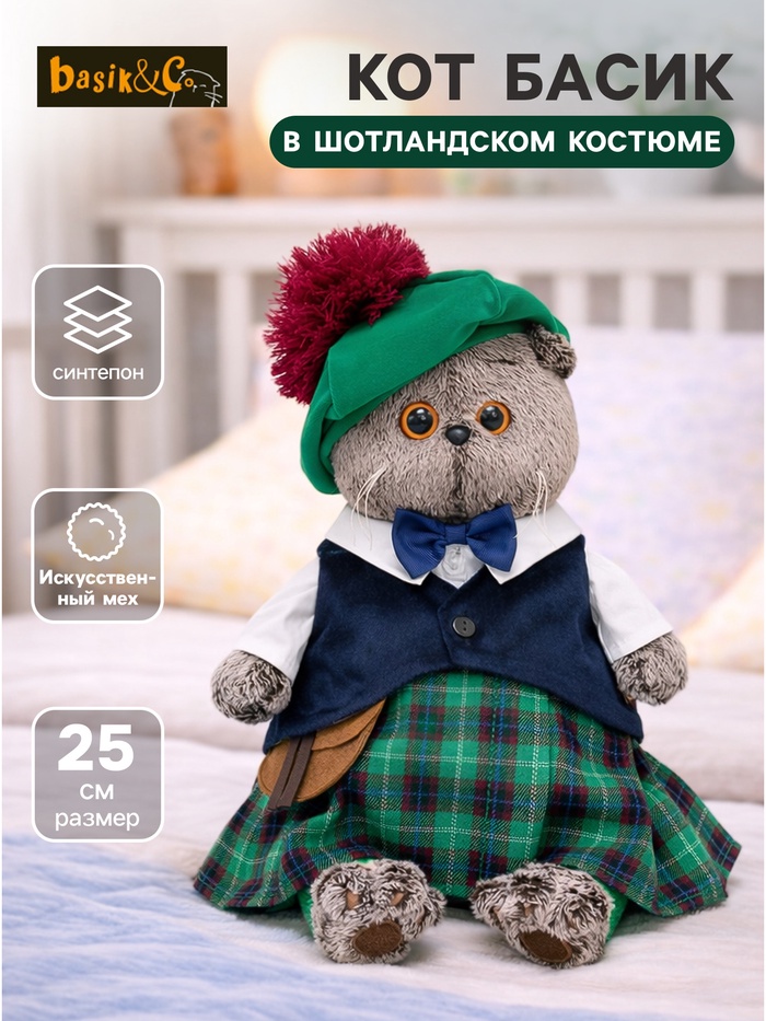 Мягкая игрушка «Кот Басик в шотландском костюме», 25 см