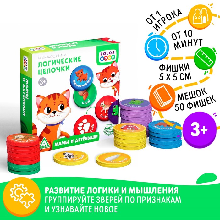 Настольная игра «Логические цепочки. Мамы и детёныши», развивающая, 2+
