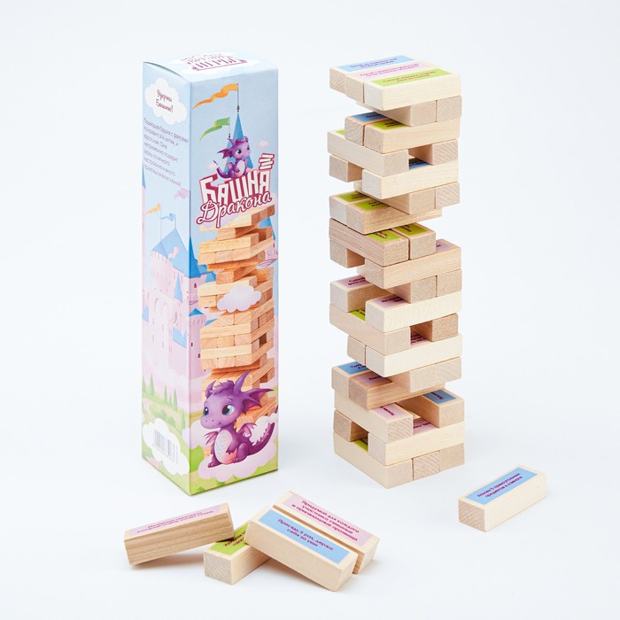 Падающая башня дженга, настольная игра, с фантами, 54 бруска, брусок 6.9 х 2.2 см, дерево