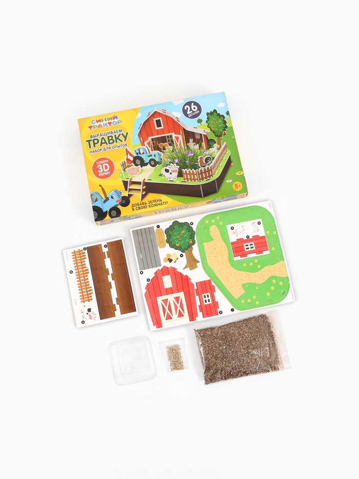 Набор для опытов Синий трактор «Выращиваем травку», 26 деталей