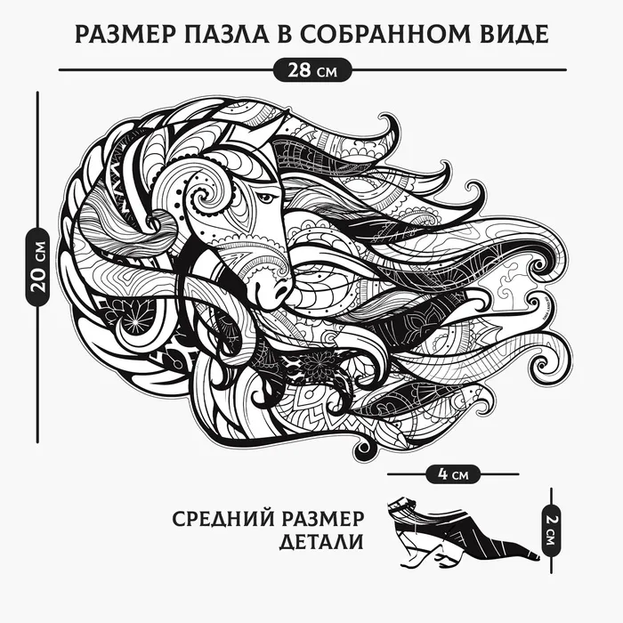 Пазл деревянный фигурный «Быстрее ветра», чёрно-белый, 120 элементов