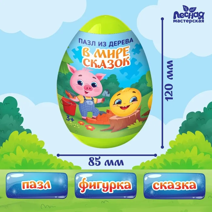 Пазлы из дерева в яйце «В мире сказок», фигурка, книжка, МИКС