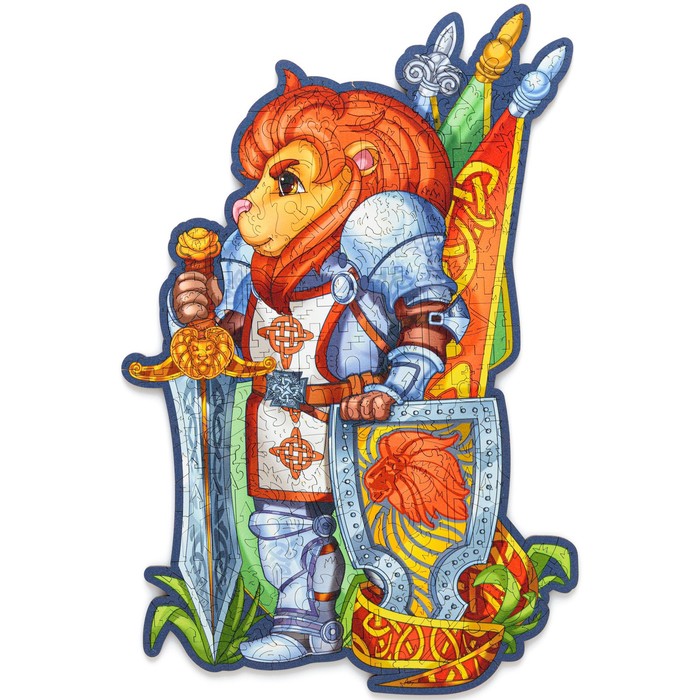 Пазл деревянный «Лев-рыцарь», размер L — 25×35 см, 110 деталей