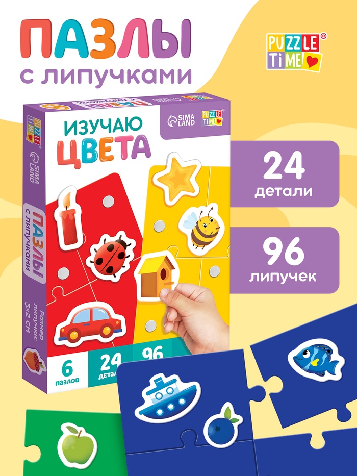 Пазлы с липучками «Изучаем цвета», 24 элемента, 96 липучек