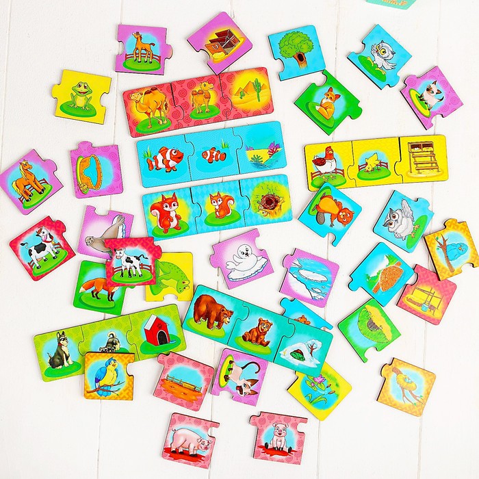 Пазлы набор «Мама, малыш, жилище», пазл - тройной, элемент 5.5×5.5 см, 16 мини - пазлов