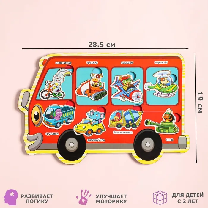 Пазлы деревянные "Транспорт", автобус, 9 деталей, 28.5х19 см