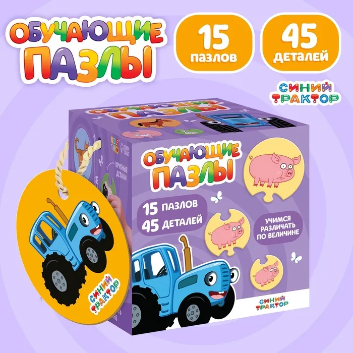 Пазлы - цепочки «От большего к меньшему», Синий трактор, 45 деталей