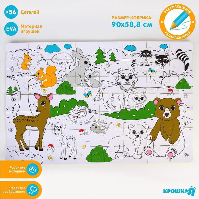 Мягкий пазл для малышей раскраска «Мамы и малыши», размер 60х90 см, 56 деталей, Крошка Я