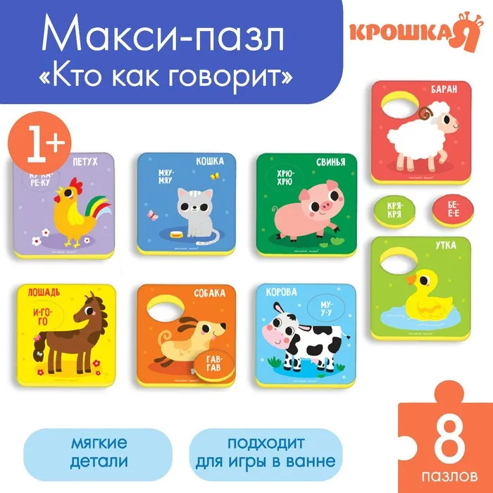 Пазлы мягкие для малышей Крошка Я «Кто как говорит?», 8 шт., от 1 года