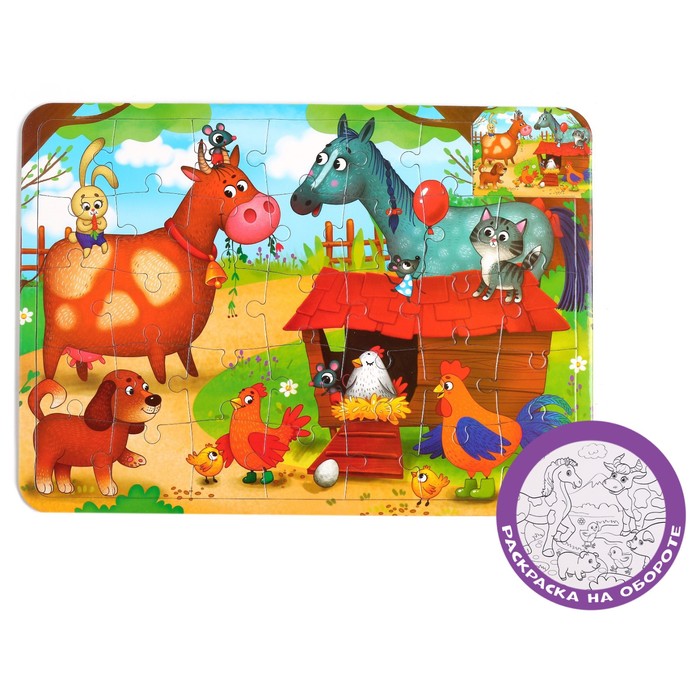 Пазл - раскраска в рамке «На ферме», 34 детали