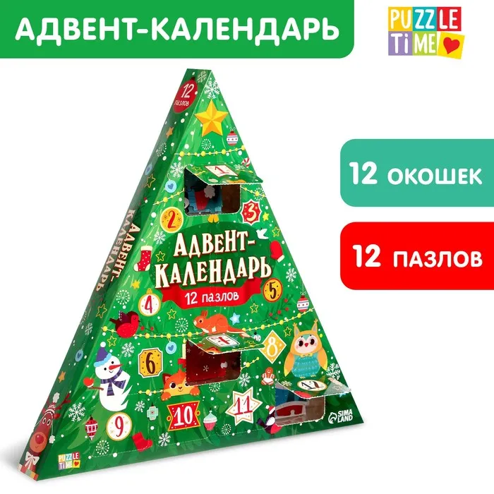 Адвент - календарь новогодний «Новогодняя ёлка», детский, 12 окошек с подарками: 12 пазлов